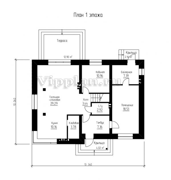 | Размеры дома: | 13.34м×10.04м |