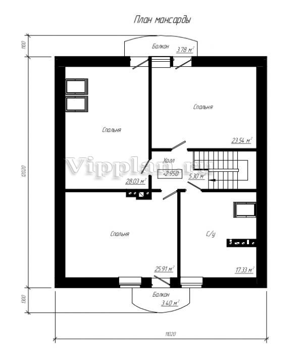 | Размеры дома: | 12.02м×11.02м |