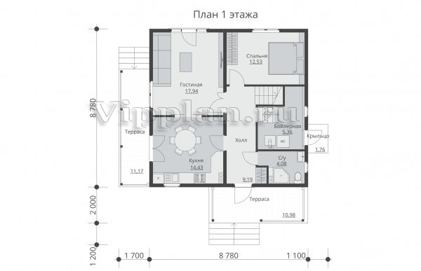| Размеры дома: | 10.78м×10.48м |