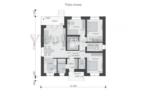 | Размеры дома: | 11.32м×12.32м |